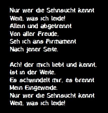 kommt goethes gedicht vor, Nur wer die Sehnsucht
