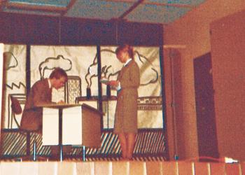 beim vortrag vor den eltern. 2. der manager 3. reisebüro