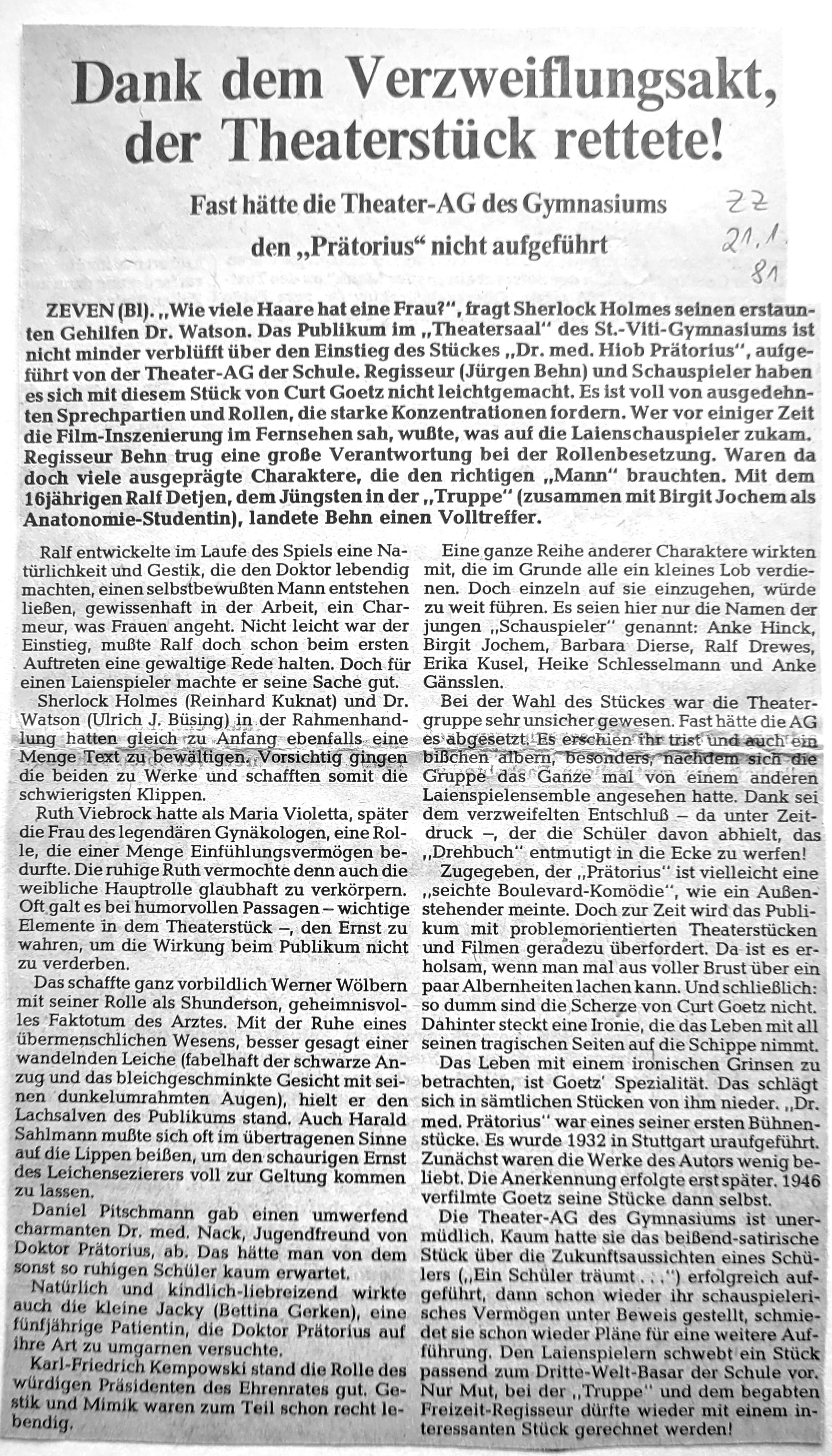 der Theater-AG befanden wir uns damals [als wir Prätorius