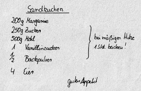 so, aus Zeitgründen fand bei uns das Teetrinken und Kuchenessen immer