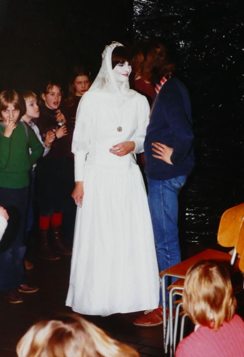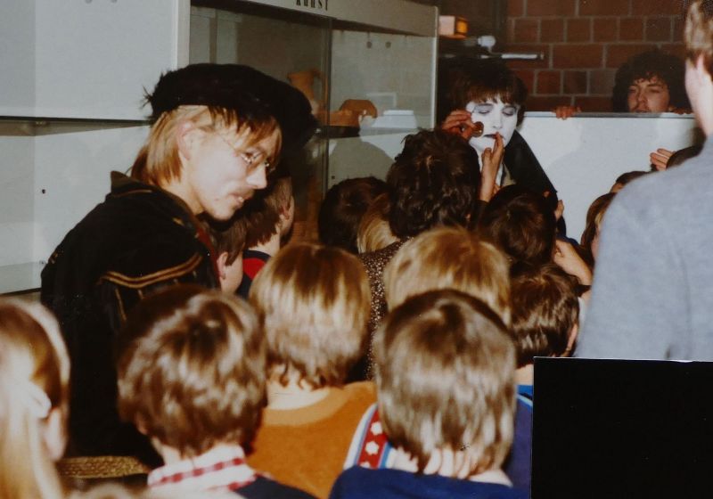 sie unterhält sich mit mädchen und jungen aus dem publikum, auf dem dritten bild mit stefan, der diesmal nur eine verkleidete rolle spielte, aber beim nächsten stück eine der hauptpersonen wird.