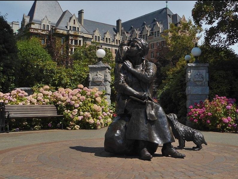 Das ist das Denkmal, das in Victoria steht, im Staate British Columbia. Es zeigt die ältere Emily Carr, auf ihrem Arm trägt sie Woo, ihren Affen. In Victoria, der Hauptstadt von BC, war ich schon, aber damals kannte ich Emily Carr noch nicht. Die anderen beiden Bilder unten zeigen den Urwald, den sie dort erlebt hat. Ich auch, allerdings führte ein Holzpfad durch das begehbare Waldstück, streng genommen also sehr touristisch, aber sonst empfand ich den Urwald (Regenwald) wie auf dem Gemälde gezeigt. Auch die vielen Totempfähle habe ich gesehen und ein native Dorf besichtigt, aber man bekam schon einen Eindruck von der Unterdrückung dieses Volkes, was später immerhin genauer untersucht wurde, um manches wieder gut zu machen.
